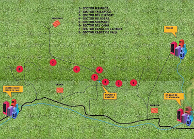 Aparcamos cerca del Sector Mafrica, el más cercano a la empresa del mismo nombre, y seguimos la pista junto al campo hasta algunos de sus rincones, ya en el bosque, del Sector Tallafocs y Sector Dipòsit.