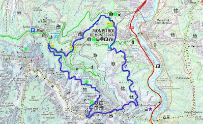 Con el claro propósito de movernos y darle cera al cuerpo. Hacemos la siguiente ruta: Monistrol de Montserrat, subida por el Camí de l'Ángel, Ermita de Santa Cecilia, y subida por el Camí de l'Arrel a Ermita de Sant Benet y La Trinitat, a buscar de bajada ya la Ermita de Santa Anna y por el Camí Vell al Monestir de Montserrat y de vuelta por el Camí de les Aigües a Monistrol.